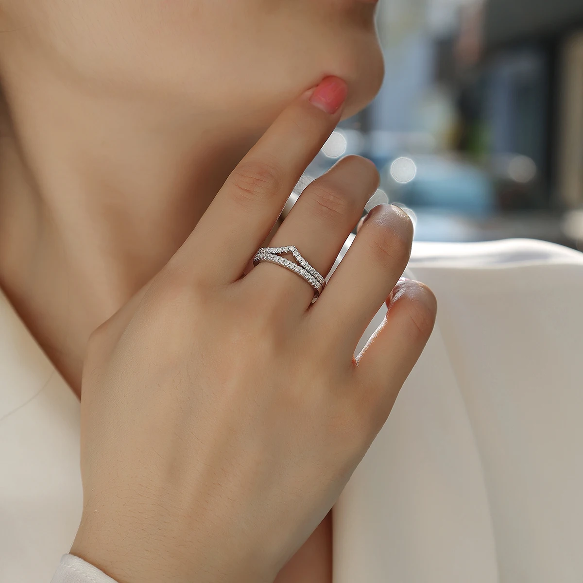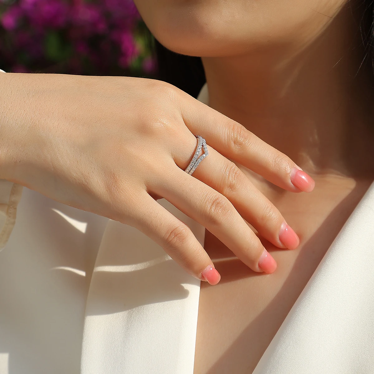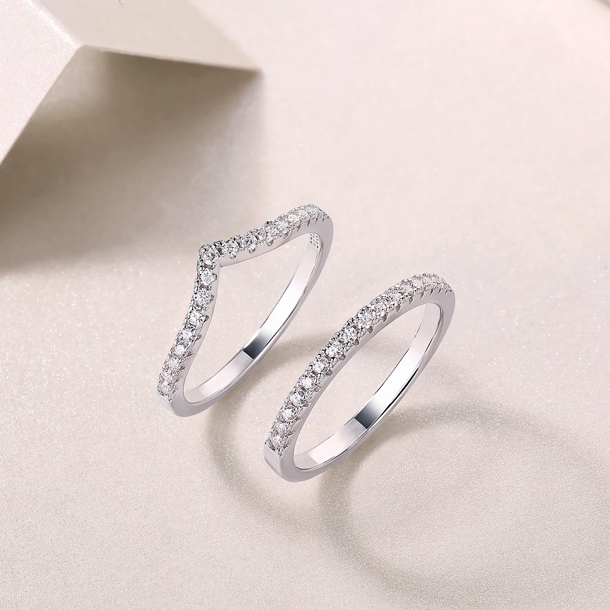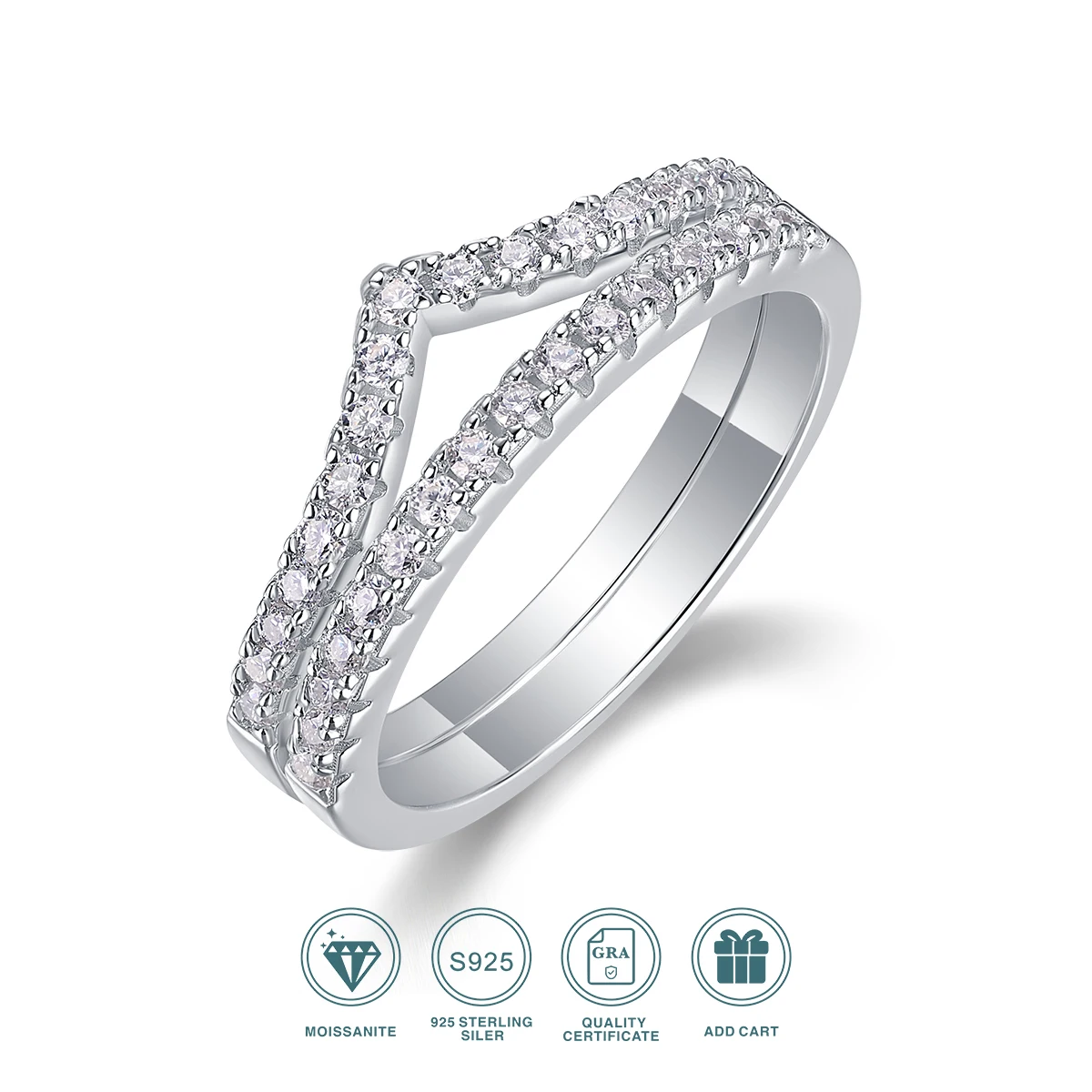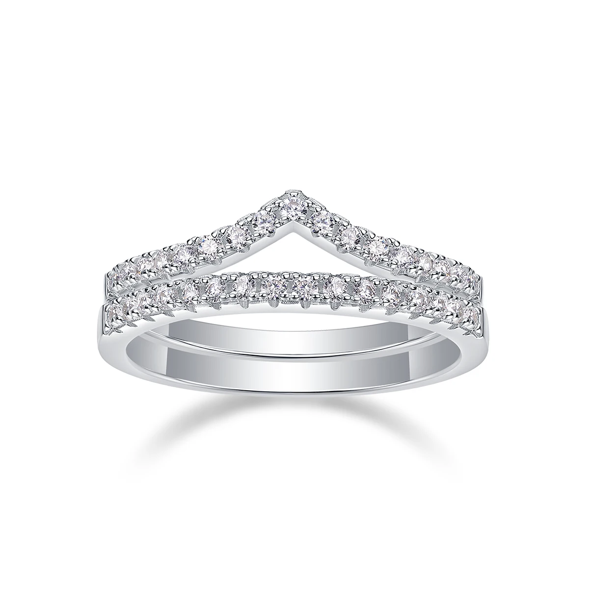 خاتم من الفضة الإسترليني من JIUZUAN خاتم مويسانيتي من قطعتين خاتم خطوبة زفاف قابل للتكديس مع شهادة هدية لصديق