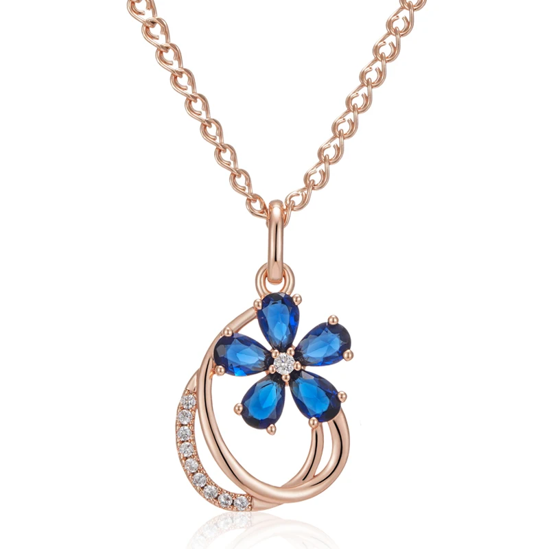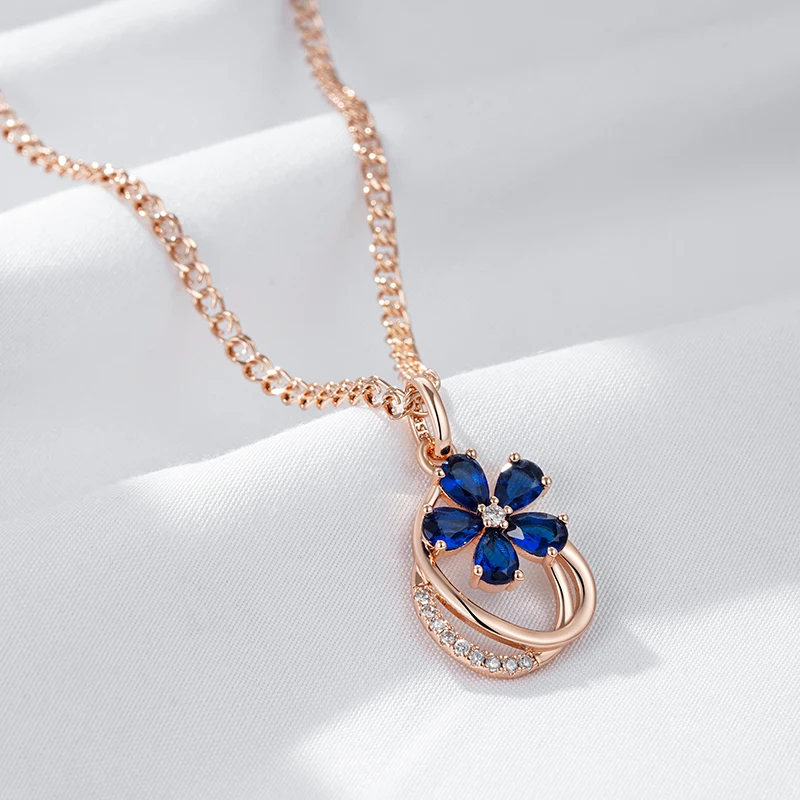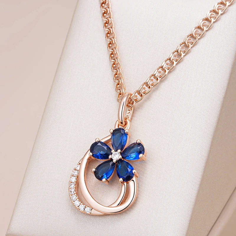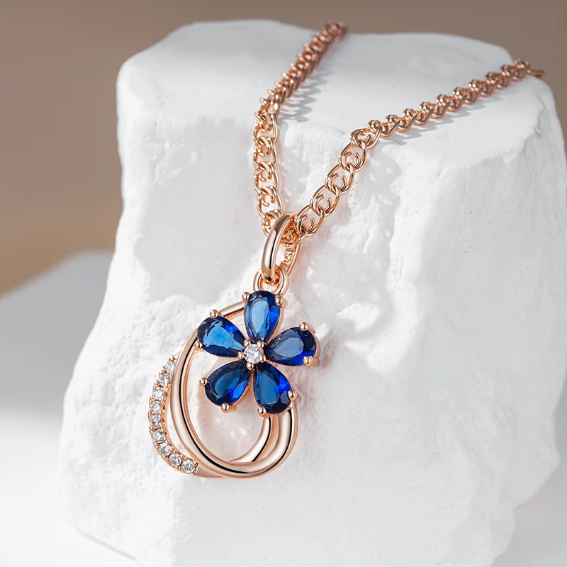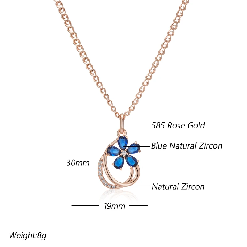 Kinel الاتجاه لامعة الأزرق الطبيعي الزركون زهرة قلادة قلادة للنساء 585 ارتفع الذهب اللون جودة اليومية غرامة خمر مجوهرات